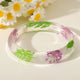 Transparent Resin Bangle Bracelet with Green Leaves & Purple Flowers