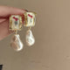 French Style Flower Alloy Pearl Drop Earrings For Women