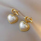 Gold Plated Cross Hook Heart-Shaped Pearl Drop Earrings